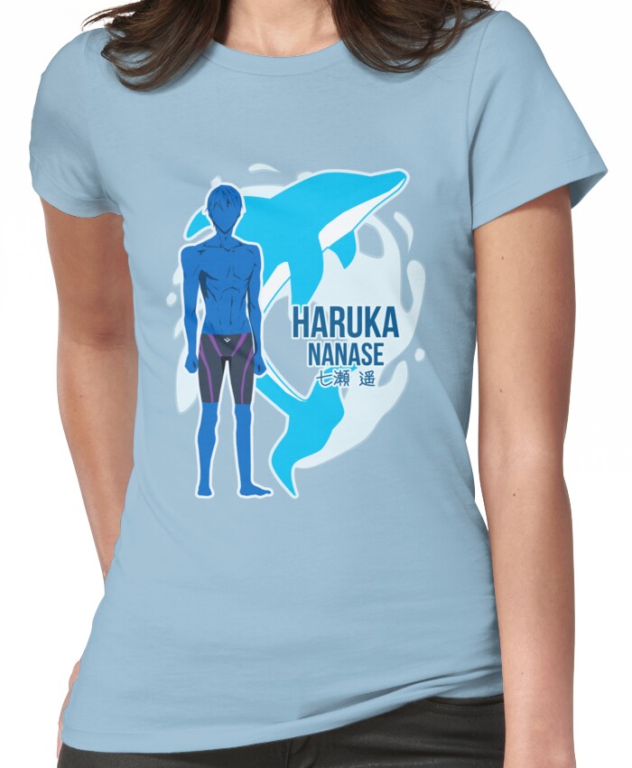 from the Artist: Women’s T-Shirt. Note: For shirts, colors will appear brighter on the final product. A shirt design based on Haruka Nanase from the anime “Free!” and his representative animal, the dolphin. Want just the animals? “I have that here!”:http://www.redbubble.com/people/a745/works/10683143-the-animals-of-free Prefer the guys themselves? Then give this shirt a try, featuring all our favorite swimming boys (including Rin!) in their wonderful swimming gear! “Version 1″:http://www.redbubble.com/people/a745/works/10682805-the-guys-of-free-version-1” / “Version 2”:http://www.redbubble.com/people/a745/works/10682821-the-guys-of-free-version-2 And if for some reason you don’t like Rin, then try these other ones that focus only on the Iwatobi Swim Club: Iwatobi Swim Club Characters – “version 1″:http://www.redbubble.com/people/a745/works/10682749-iwatobi-swim-club-characters-ver-1” / “version 2”:http://www.redbubble.com/people/a745/works/10682768-iwatobi-swim-club-characters-ver-2