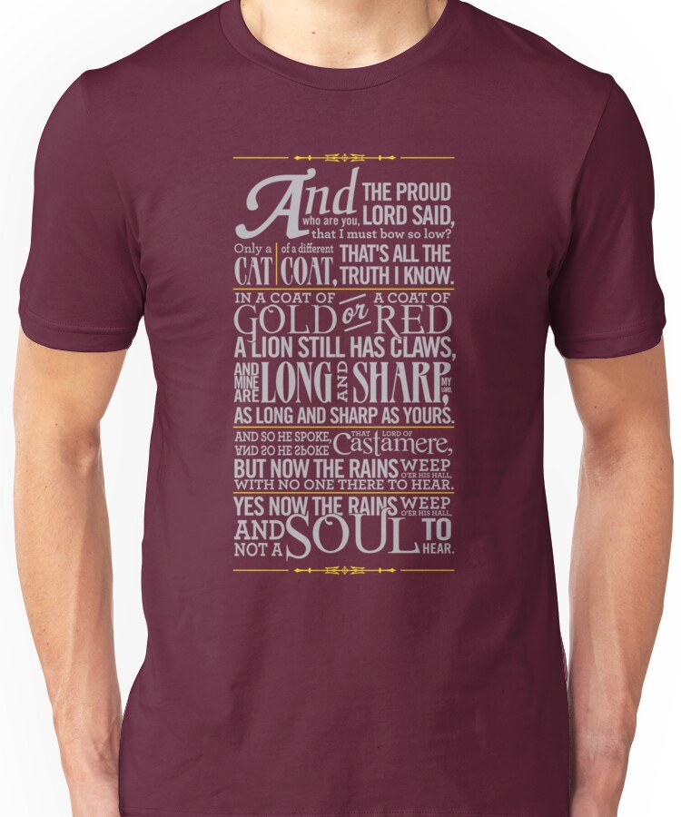 The Rains of Castamere Unisex T-Shirt NOW $19.5