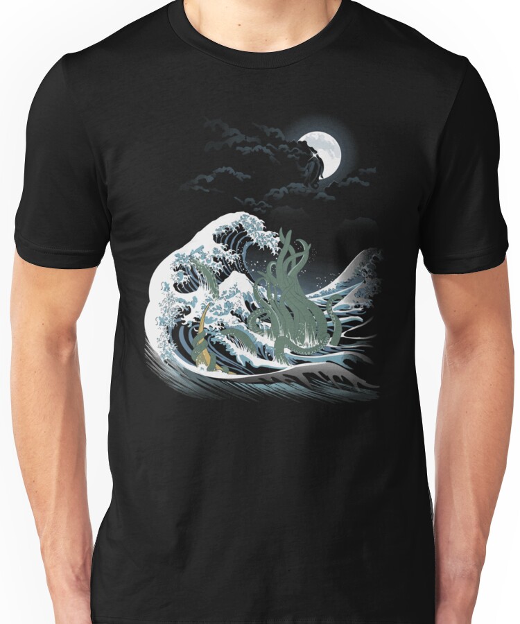 The Wave Off R’lyeh Unisex T-Shirt NOW $19.66 October 13, 2017 by admin Click Here to Purchase at: $19.66 from the Artist: Unisex T-Shirt. Inspired in the The Great Wave off Kanagawa and Lovecraft