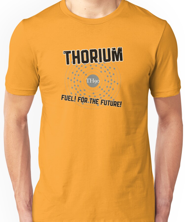 from the Artist: Unisex T-Shirt. Inspired by “this article”:http://www.wired.com/magazine/2009/12/ff_new_nukes/ in Wired; I believe everything I read there. Plus this would solve a lot of problems posed by uranium. “And that waste needs to be stored for only a few hundred years, not a few hundred thousand like other nuclear byproducts. Because its so plentiful in nature, its virtually inexhaustible. Its also one of only a few substances that acts as a thermal breeder, in theory creating enough new fuel as it breaks down to sustain a high-temperature chain reaction indefinitely. And it would be virtually impossible for the byproducts of a thorium reactor to be used by terrorists or anyone else to make nuclear weapons.” *** “Also on Zazzle with different t-shirt styles, prices, and colors – as well as coffee mugs!”:http://www.zazzle.com/thorium_fuel_for_the_future_tshirt-235030493228652063?rf=238421434795619955 !http://rlv.zcache.com/isapi/designall.dll?action=realview&pdt=shirt&pending=fa