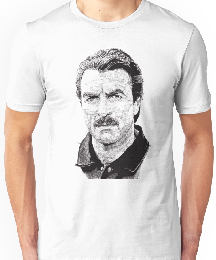 from the Artist: Unisex T-Shirt. Drawing of Magnum P.I., Tom Selleck http://rikreimert.com http://www.facebook.com/RikReimertcom https://twitter.com/RikReimert