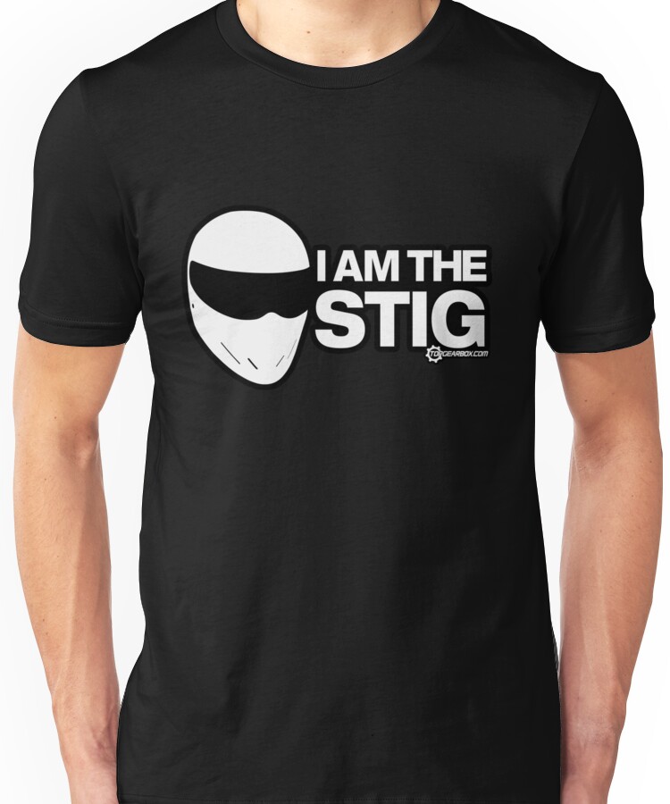 from the Artist: Unisex T-Shirt. Do you fancy yourself as a bit of an awesome driver and want to shout about it? Why not claim to be TopGears tame racing driver? This awesome “”I am the Stig” design looks awesome and features the Stigs iconic Simpson Diamondback helmet drawn perfectly in CAD. Also available as a die-cut vinyl bumper sticker directly from our website – http://www.topgearbox.com/products-page/
