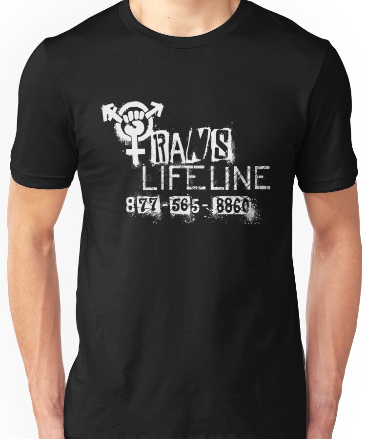 from the Artist: Unisex T-Shirt. All proceeds go to Trans Lifeline, a 501(c)3 non-profit dedicated to the well being of transgender people. Trans Lifeline operates a crisis hotline for transgender people staffed by transgender people. Trans Lifeline has trained more than 400 transgender people in peer counselling and crisis intervention and answered over 11000 calls in the a little over an year of operation. More info: http://www.translifeline.org/