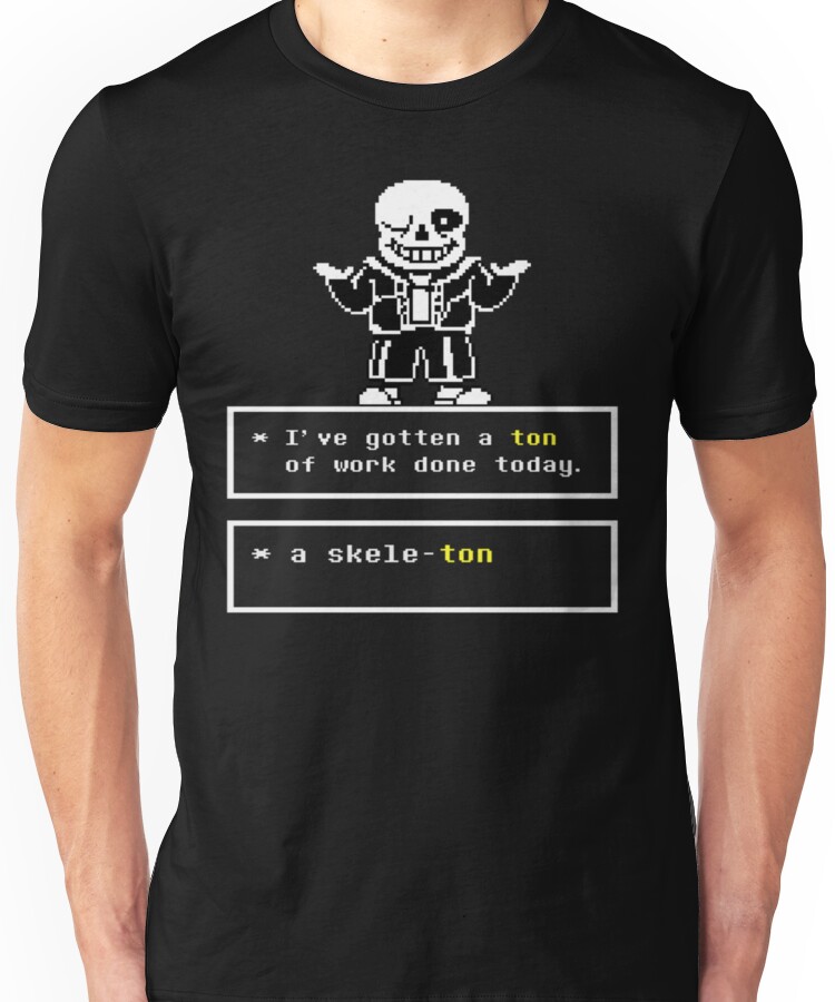 from the Artist: Unisex T-Shirt. Undertale – Sans, undertales skeleton “i’ve gotten a ton of work today… a skele-ton!” funny undertale t-shirt High quality, durable.