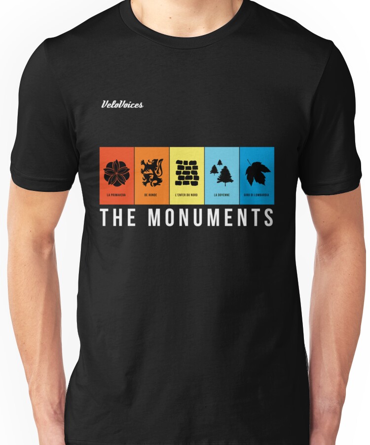 from the Artist: Unisex T-Shirt. The 5 greatest one-day classics on one shirt! The Monuments! The five Monuments of cycling are our favorite to watch. The Monuments are Milan- San Remo (La Primavera), the Tour of Flanders (The Ronde), Paris-Roubaix (L’Enfer du Nord), Liege-Bastone-Liege (La Doyenne) and the Giro di Lombardia (Tour of the falling leaves). Please be aware that these products are shipped from the United States and may incur import charges. (For example, this is around £11 for items shipped to the UK. Particularly large orders may also incur additional customs charges – this varies between countries.)