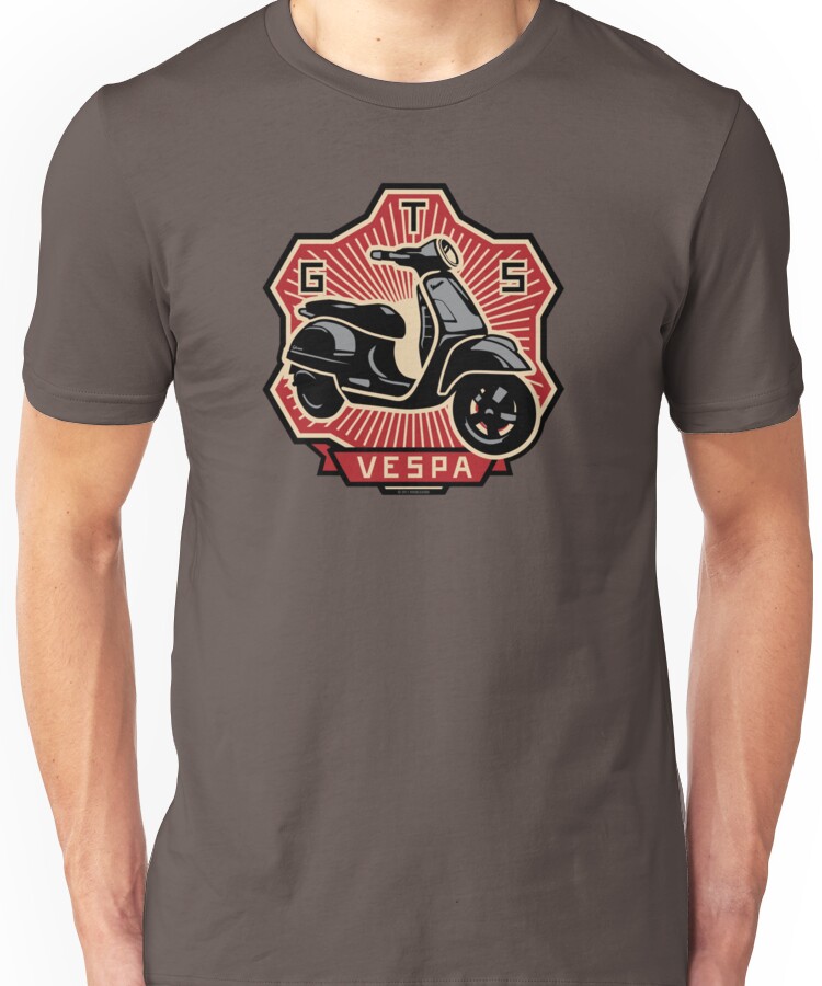 from the Artist: Unisex T-Shirt. Referencing the traditional cog emblems used by Vespa clubs worldwide and presented in a style reminiscent of revolutionary poster art, this design salutes the Vespa GTS range. !http://i189.photobucket.com/albums/z276/rp_1000/doublegood/vespa-gts-dark-grey-folded-hoodie-m.jpg! Screen-printed stickers of this design are available directly from “doublegood.co.uk”:http://www.doublegood.co.uk