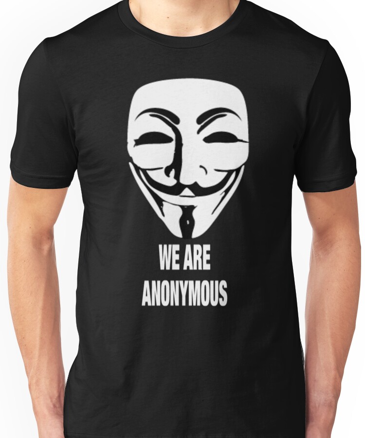 from the Artist: Unisex T-Shirt. Awesome to wear at any anonymous protest, and any profits will be donated to anonymous at http://www.whyweprotest.net/en/ So come on and help, you can also purchase as a awesome sticker, GO CRAZY, but remember the 22 rules
