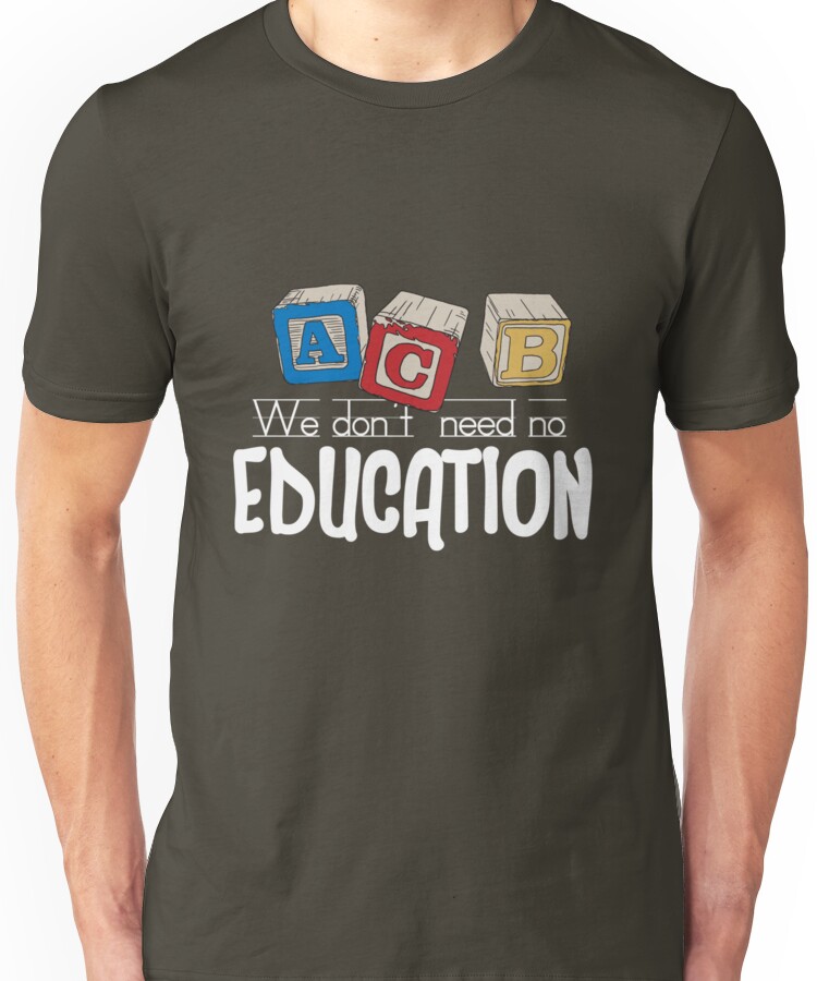 We Don’t Need No Education Unisex T-Shirt NOW $21.94 October 13, 2017 by admin Click Here to Purchase at: $21.94 from the Artist: Unisex T-Shirt. Rock out in this Pink Floyd inspired Tee from Urban Bratz