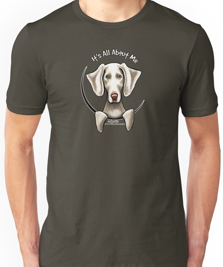 from the Artist: Unisex T-Shirt. It’s all about the Weimaraner! Original illustration by Andie of Off-Leash Art. Andie captures the unique characteristics of each dog breed using indian inks, art markers and colored pencils for a fun, whimsical look. See also more breed designs in our store “Andies Art Bubble”:http://redbubble.com/people/offleashart.
