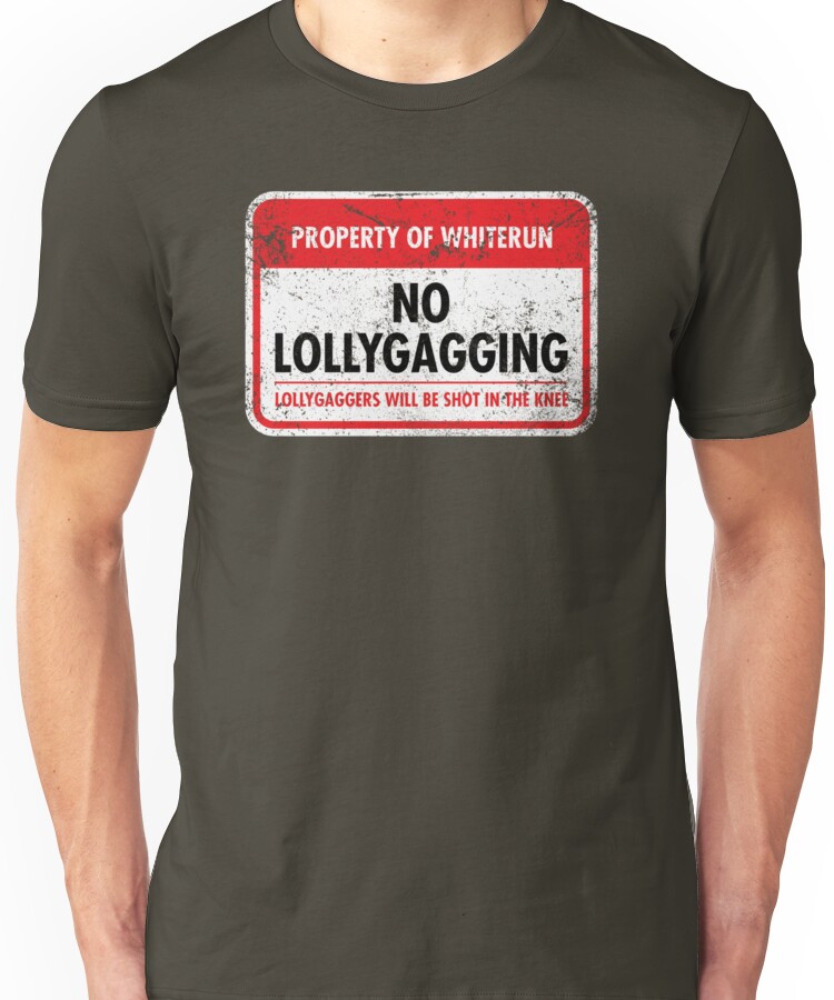 from the Artist: Unisex T-Shirt. Each hold tracks its crime separately, but if there’s one thing the guards agree on, it’s lollygagging. Show some love for your favorite Skyrim city!