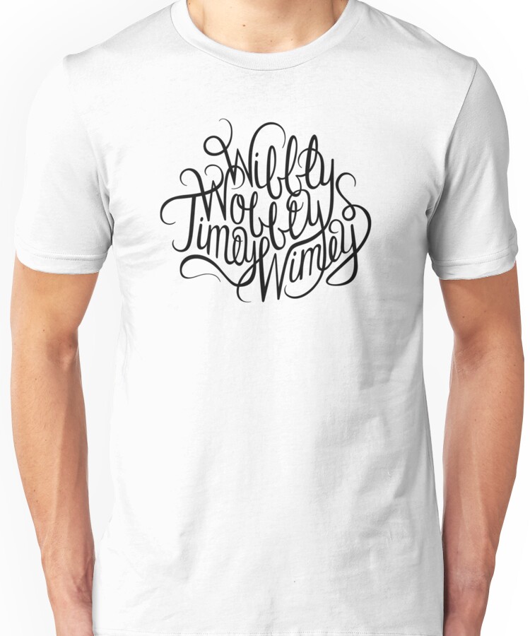 from the Artist: Unisex T-Shirt. People assume that time is a strict progression of cause to effect, but *actually* from a non-linear, non-subjective viewpoint – it’s more like a big ball of wibbly wobbly… timey wimey… stuff.