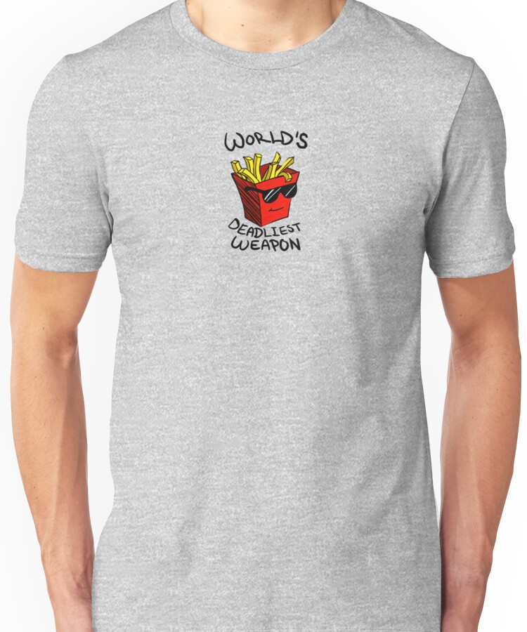 from the Artist: Unisex T-Shirt. French fries have apparently become the world’s deadliest weapon. Watch here to see what I’m talking about: http://bit.ly/SJMJHo © 2012 ChimneySwift Entertainment, LLC
