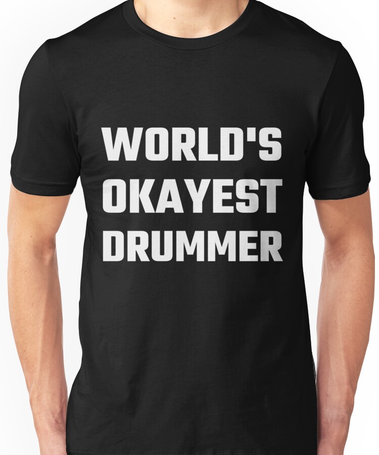 from the Artist: Unisex T-Shirt. World’s Okayest Drummer T-shirt