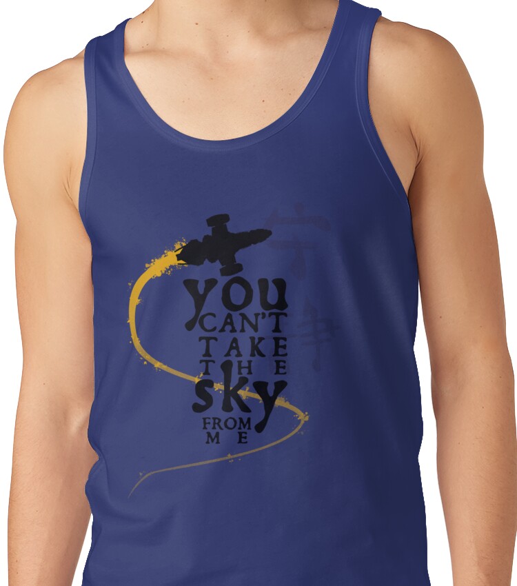 from the Artist: Unisex Tank Top. Burn the land, boil the sea, you can’t take the sky from me. Dark shirt variant is here: http://www.redbubble.com/people/xaphod/works/11719194-you-cant-take-the-sky-from-me-dark-shirt-variant