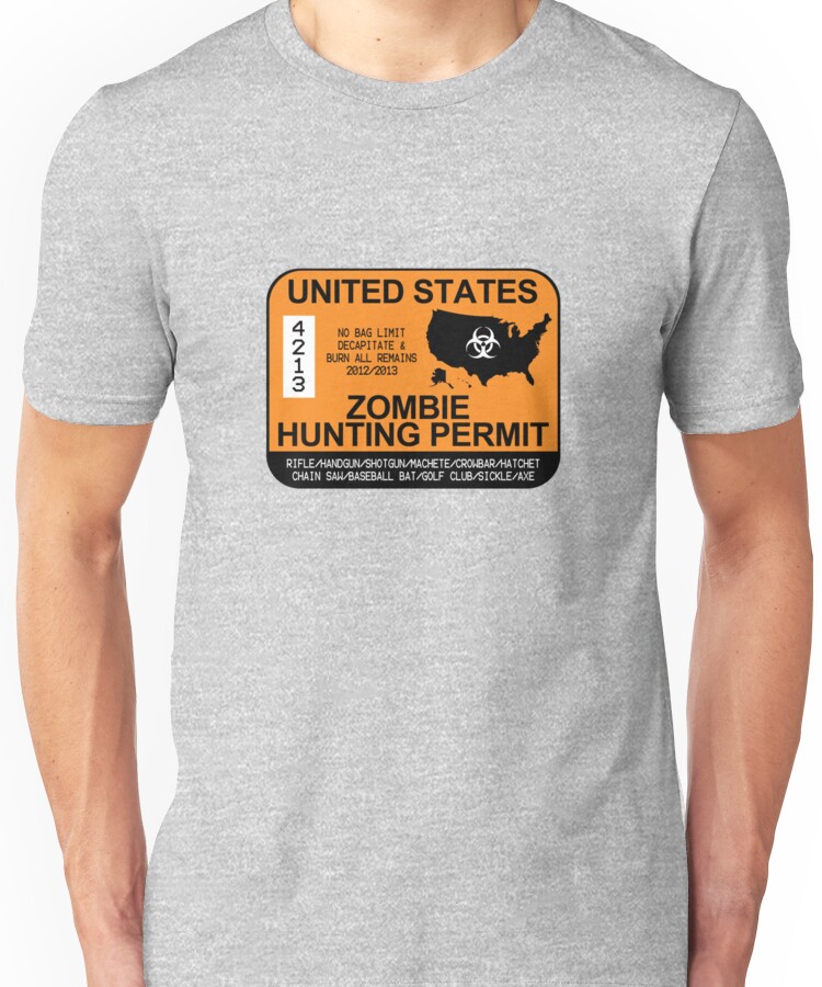 from the Artist: Unisex T-Shirt. Get those zombies! 2017 International https://www.redbubble.com/people/zorpzorp/works/25908988-international-zombie-hunting-permit-2017 2015 International https://www.redbubble.com/people/zorpzorp/works/15261499-international-zombie-hunting-permit 2013 International https://www.redbubble.com/people/zorpzorp/works/9977983-international-zombie-hunting-permit 2015/16 https://www.redbubble.com/people/zorpzorp/works/15193850-zombie-hunting-permit-2015-2016?asc=u&grid_pos=4&p=sticker 2013/14 https://www.redbubble.com/people/zorpzorp/works/9944480-zombie-hunting-permit-2013-2014?asc=u&grid_pos=2&p=t-shirt&style=mens 2012/13 https://www.redbubble.com/people/zorpzorp/works/9117637-zombie-hunting-permit-2012-2013?asc=u&grid_pos=1&p=t-shirt&style=mens